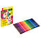 Большой набор фломастеров JOVI с особо прочным наконечником и вентилируемым колпачком. Толщина линии письма - 3 мм, а длина линии письма составляет 400 метров. В наборе 24 ярких и насыщенных цвета. Упакованы в картонную коробку с европодвесом.
