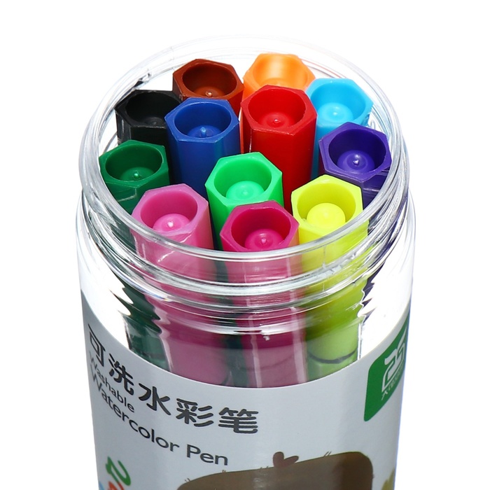 Фломастеры 12 цветов Полоски в тубусе Коала зеленая, вентилируемый колпачок