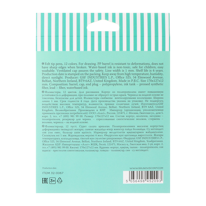 Фломастеры 12 цветов Полоски в тубусе Коала зеленая, вентилируемый колпачок