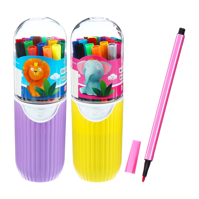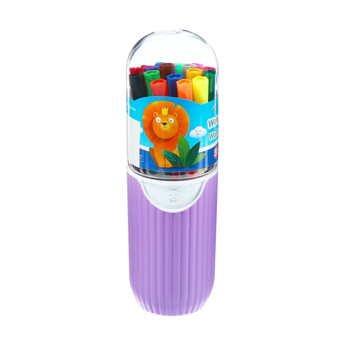 Фломастеры 24 цвета с пулевидным наконечником, в пластиковом пенале Дино МИКС