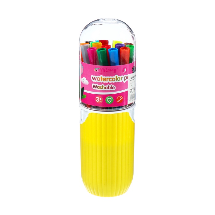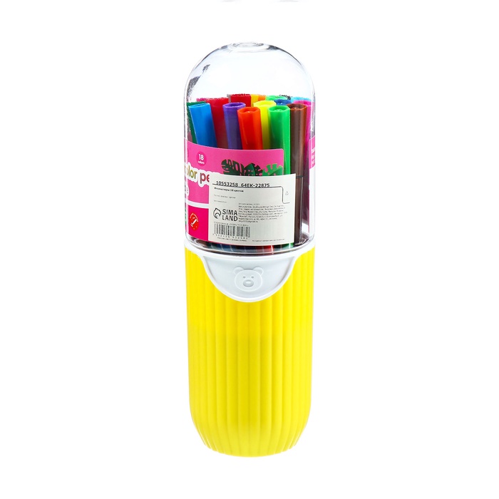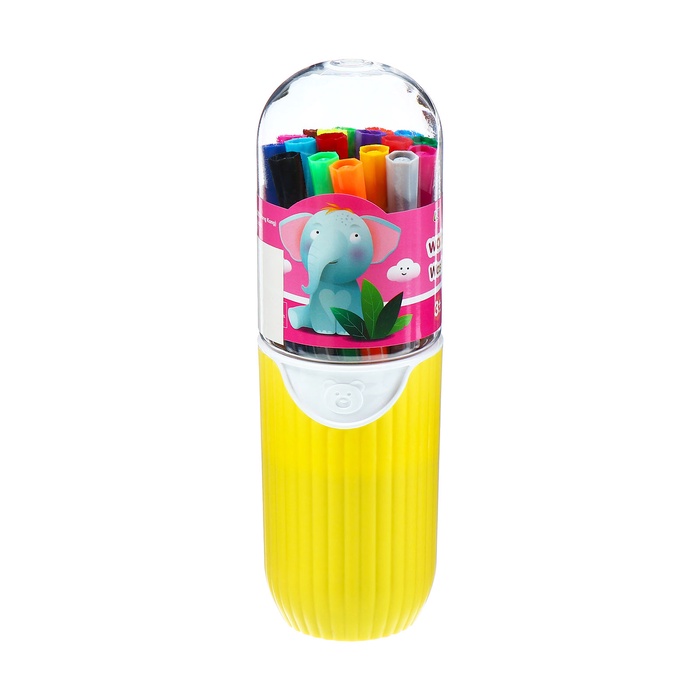 Фломастеры 12 цветов Полоски в тубусе Коала зеленая, вентилируемый колпачок