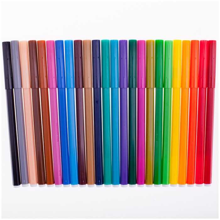 Фломастеры 24 цвета с пулевидным наконечником, в пластиковом пенале Дино МИКС