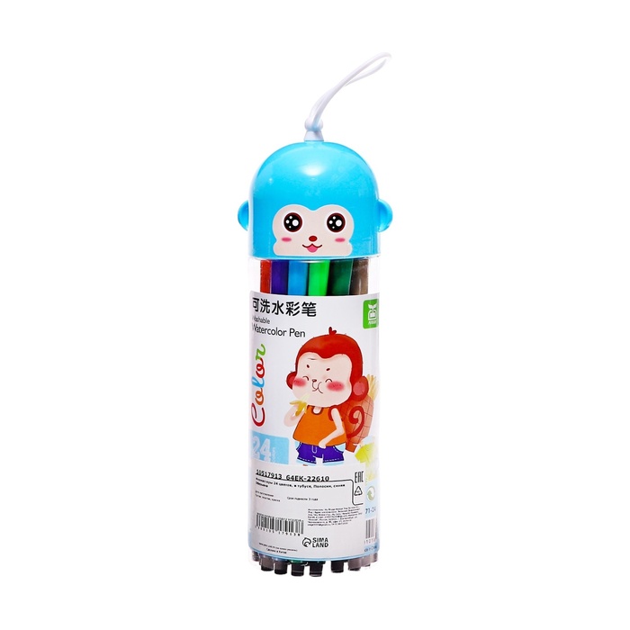 Фломастеры 12 цветов Полоски в тубусе Коала зеленая, вентилируемый колпачок