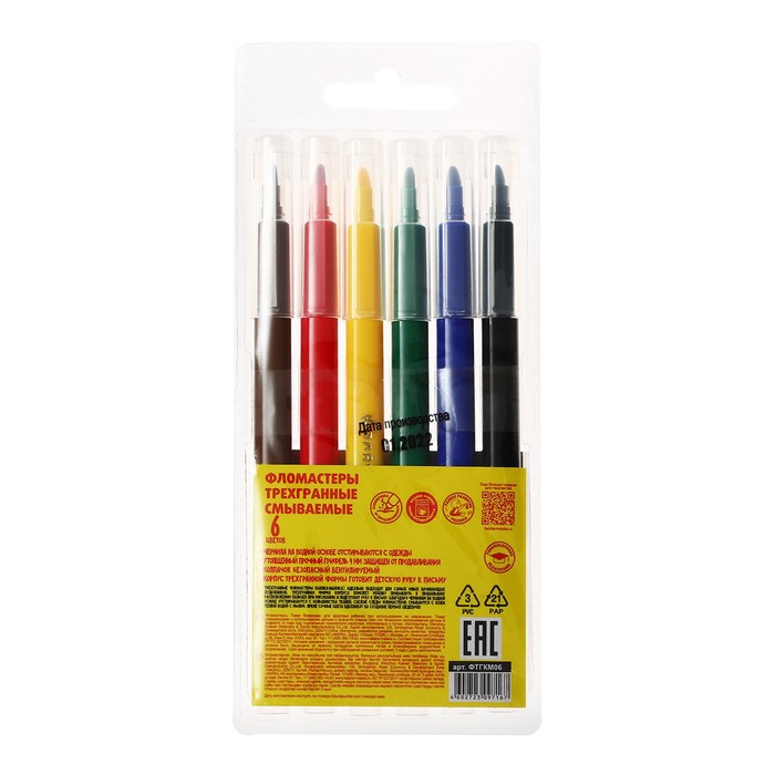 Фломастеры 6 цв Пастель,корпус треугольный,с пулевидным наконечник,в картон коробке МИКС