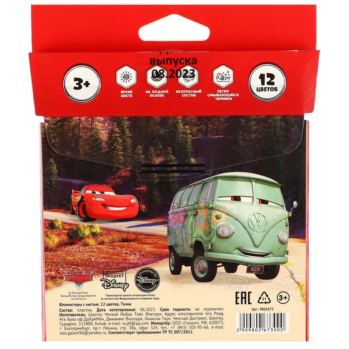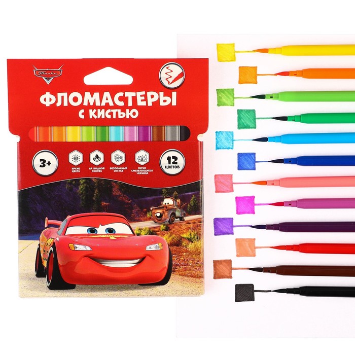 Фломастеры с кистью, 12 цветов, Тачки