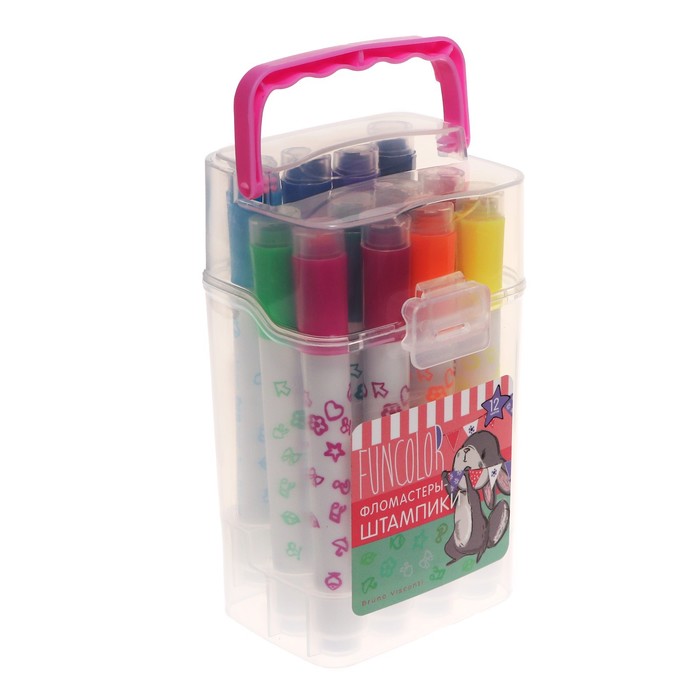 Фломастеры 24 цвета с пулевидным наконечником, в пластиковом пенале Дино МИКС
