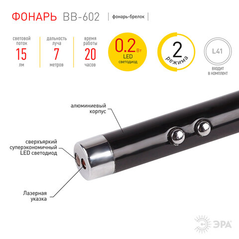 Светодиодный фонарь-брелок работает в двух режимах: яркий фонарик и лазерная указка.Несмотря на свои компактные размеры, фонарь оснащён мощным светодиодом, который светит ярким белым светом. Способен на 20 часов работы, не требуя замены элементов питания.