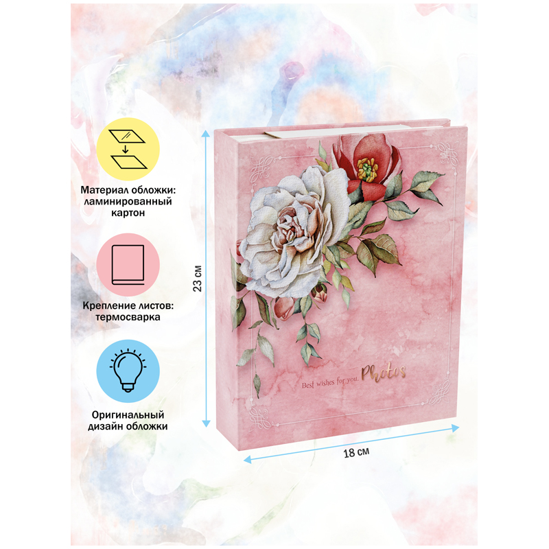 Фотоальбом BRAUBERG на 200 фото 10*15 см, твердая обложка, окно под фото, "Flowery love", 391424