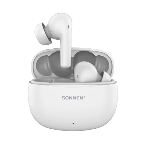 Наушники беспроводные TWS внутриканальные, гибридное шумоподавление ANC+ENC, SONNEN PREMIUM EP-BH34W, bluetooth 5.3, белые, 514124