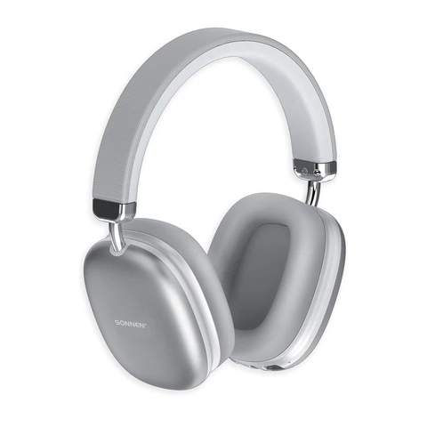 Наушники беспроводные накладные полноразмерные раздвижные мультирежимные, SONNEN HP-B12S, BT 5.1, серебристые, 514127