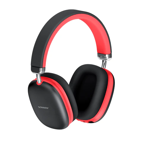 Наушники беспроводные накладные полноразмерные раздвижные мультирежимные, SONNEN HP-B12BR, BT 5.4, черный/коралл, 514128