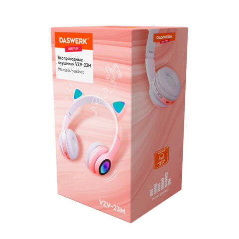 Беспроводные наушники с ушками DASWERK изготовлены из прочного и легкого abs-пластика. Подойдут как для девочки, так и для мальчика.