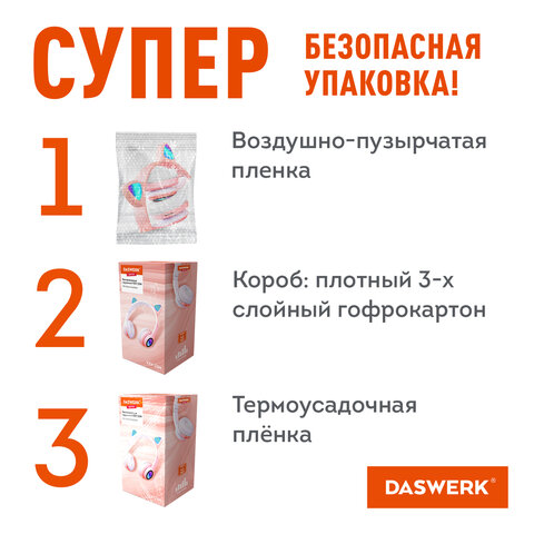 Упакованы в прочный цветной картонный короб привлекательного дизайна, поэтому беспроводные наушники DASWERK подойдут в качестве подарка друзьям, близким, детям.