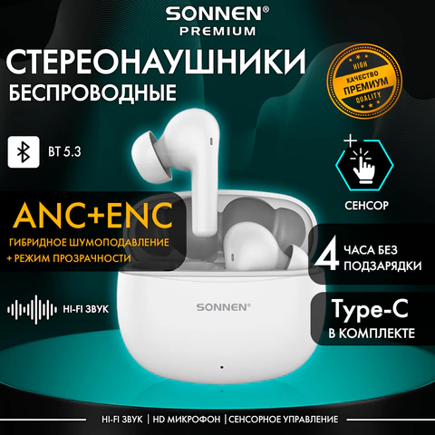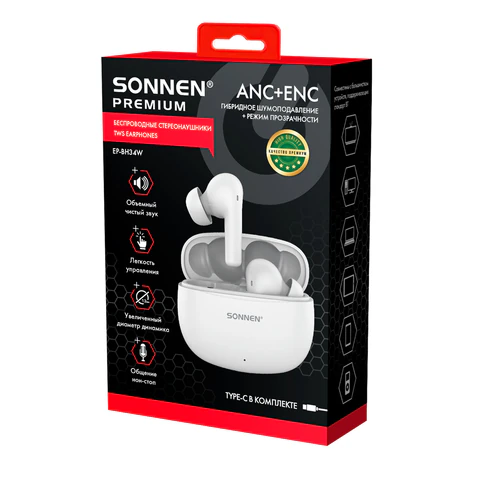 Наушники SONNEN PREMIUM EP-BH34W - это качественный и стильный аксессуар для повседневной жизни и отдыха.