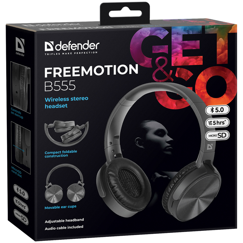 Наушники с микрофоном беспроводные Defender FreeMotion B571, Bluetooth, складные, MicroSD, разъем Type-C, черный