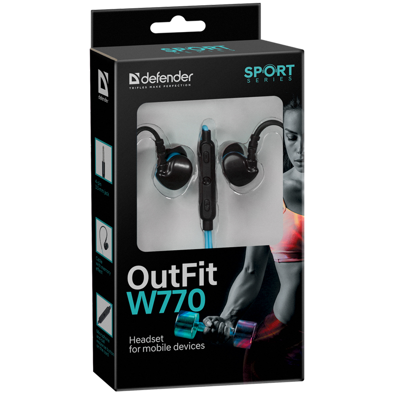 Гарнитура для смартфонов OutFit W770 черный+голубой, вставки DEFENDER