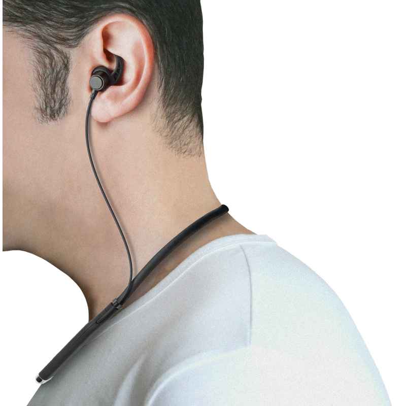 Встроенный микрофон обеспечивает качественную передачу звука. Три пары сменных амбушюр разного размера (S, M, L) позволят выбрать подходящий вам вариант, обеспечив максимальную звукоизоляцию и комфорт. Дополнительные С-образные фиксаторы для идеальной посадки. Благодаря встроенным магнитам наушники можно соединить между собой и оставить на шее, когда вы ими не пользуетесь. Время работы аккумулятора до 5 часов. Микрофон и клавиши управления на шейном ободе