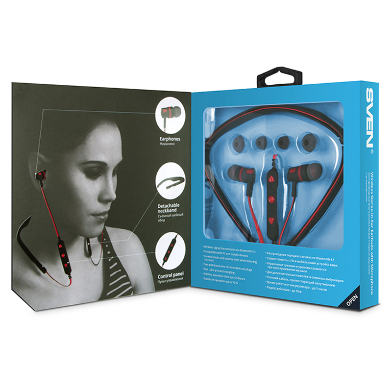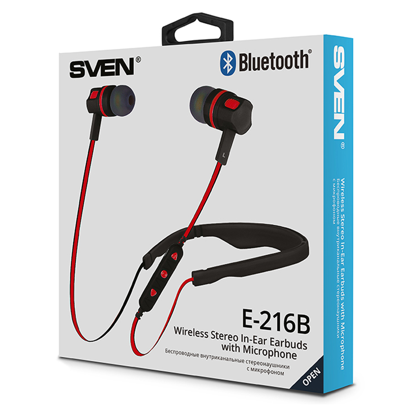 Компания SVEN представляет беспроводные внутриканальные наушники, которые идеально подходят для занятий спортом.<br/><br/>Модель подключается к плееру или смартфону с помощью Bluetooth 4.1, а это значит, что никакие лишние провода не помешают вам на прогулке или пробежке.<br/><br/>SVEN E-216B имеет съемный шейный обод, благодаря которому наушники не выпадают и не скользят даже при интенсивном движении. На проводе наушников есть небольшой пульт управления, который позволяет не только переключать треки или регулировать уровень громкости, но и принимать входящие вызовы во время использования с мобильным телефоном.<br/><br/>В фирменной упаковке, помимо самих наушников, вы найдете два дополнительных комплекта сменных амбушюров. Они позволяют изменять размер наушников для вашего удобства, благодаря чему те хорошо держатся и не выпадают даже во время интенсивных занятий спортом или быстрой ходьбы.