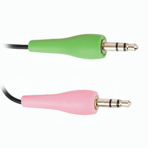 Гарнитура подключается к звуковой карте ПК с помощью стандартных разъемов mini-jack 2х3,5 мм (3 pin).