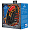 Счастливый обладатель этой модели получит эргономичную гарнитуру, выполненную из качественного пластика с покрытием Soft touch, с мягким оголовьем и удобными амбушюрами. Сочетание черного и красного, металлические вставки на чашках и оголовье придают гарнитуре воинственный и брутальный вид. При желании можно включить подсветку чашек и микрофона. Сделать это очень легко с помощью удобного пульта, расположенного на кабеле в тканевой оплетке. На пульте также находятся кнопки включения и выключения микрофона, регулировки громкости.