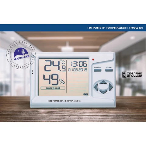 Гигрометр-термометр электронный ФАРМ-СИБ ТМФЦ-100 с поверкой РФ