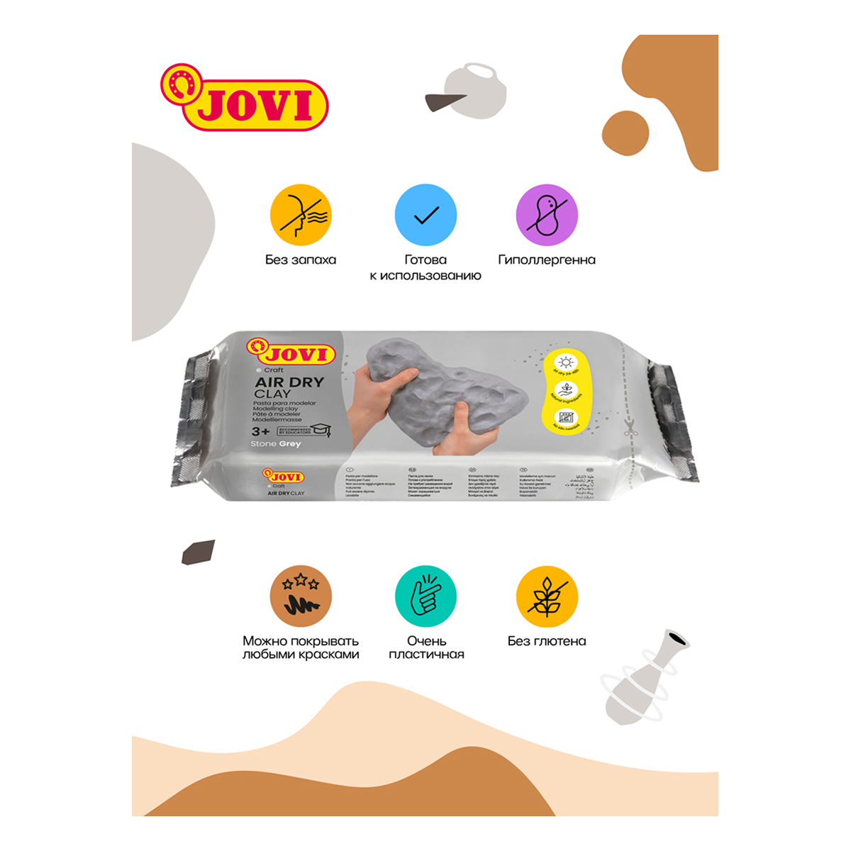 Паста для моделирования JOVI, отвердевающая, охра, 250г, вакуумный пакет
