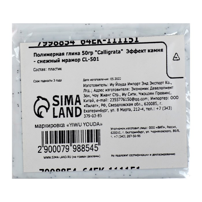 Полимерная глина для лепки, 50 г запекаемая, цвет белый «Наброскин»