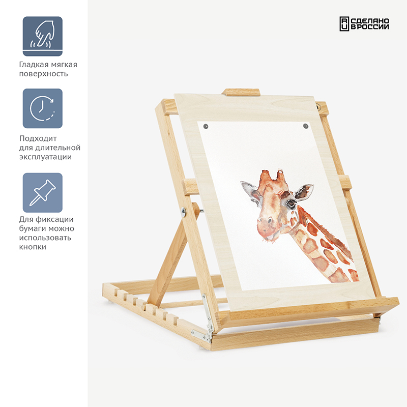 Планшеты из фанеры представляют собой жесткую основу для закрепления бумаги для чертежных и графических работ, выездов на пленэры. Планшет может быть закреплен на мольберте или этюднике. Планшет представляет собой лист клееной березовой фанеры первого сорта, закрепленный на жестком сосновом подрамнике. Фанера хорошо отшлифована, подходит даже для тонкой бумаги. Для закрепления бумаги можно использовать кнопки, поверхность планшета достатчоно мягкая для надежной фиксации, практически не повреждается и подходит для длительной эксплуатации. Планки подрамника надежно соединены металлическими скобами, фанера крепится к подрамнику под давлением, чтобы обеспечить мгновенную и прочную склейку.