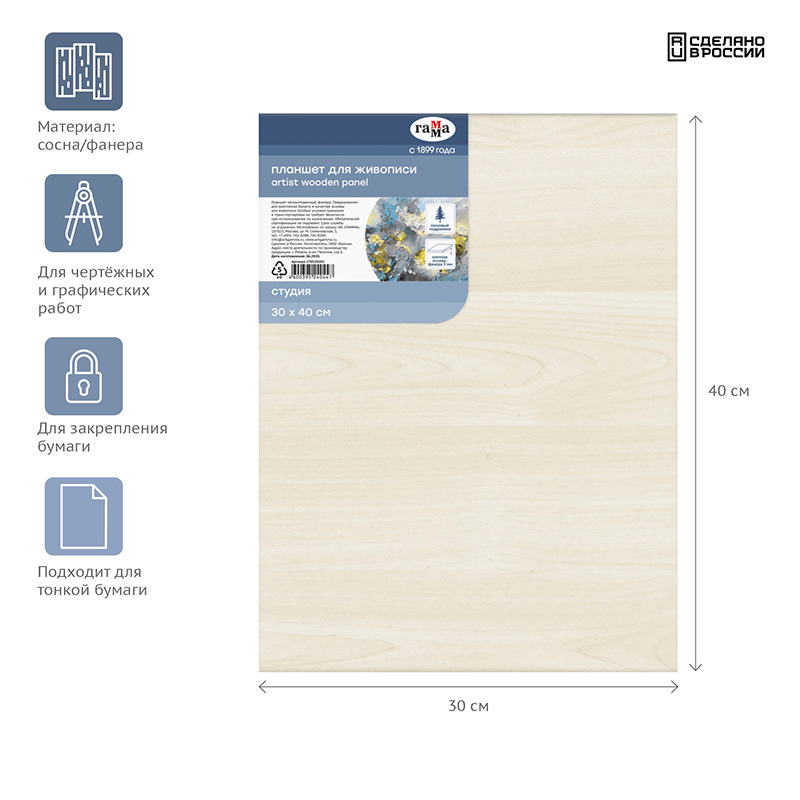 Планшет фанера 39*55см Гамма "Студия", негрунтованный
