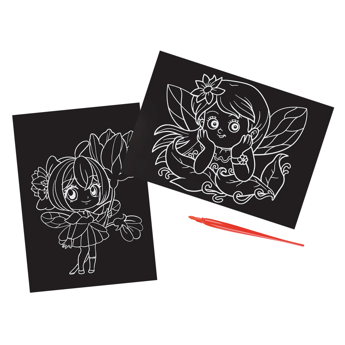 Набор «Феи» идеально подходит для первого опыта гравирования. Если с нажимом провести штихелем по листу картона, то чёрный слой легко снимется и под ним проступит яркий рисунок. Штриховать картинку можно, как обозначая отдельные детали и героев рисунка, так и всю целиком. Кроме того, комплект упакован в картонный конверт с европодвесом.