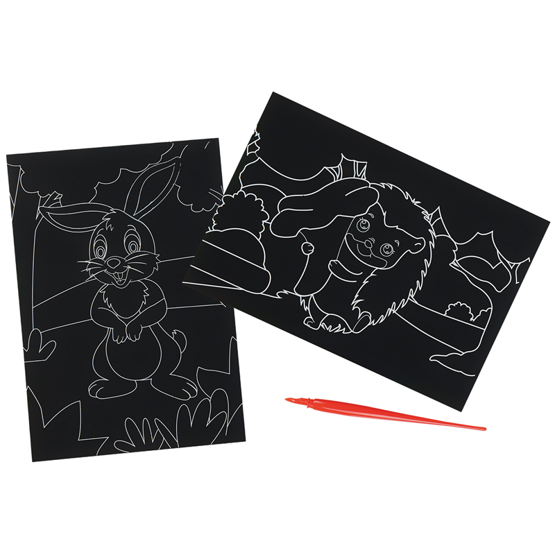 Набор идеально подходит для первого опыта гравирования. Если с нажимом провести штихелем по листу картона, то черный слой легко снимется и под ним проступит яркий рисунок. Штриховать картинку можно, как обозначая отдельные детали и героев рисунка, так и всю целиком. Кроме того, комплект упакован в картонный конверт с европодвесом.
