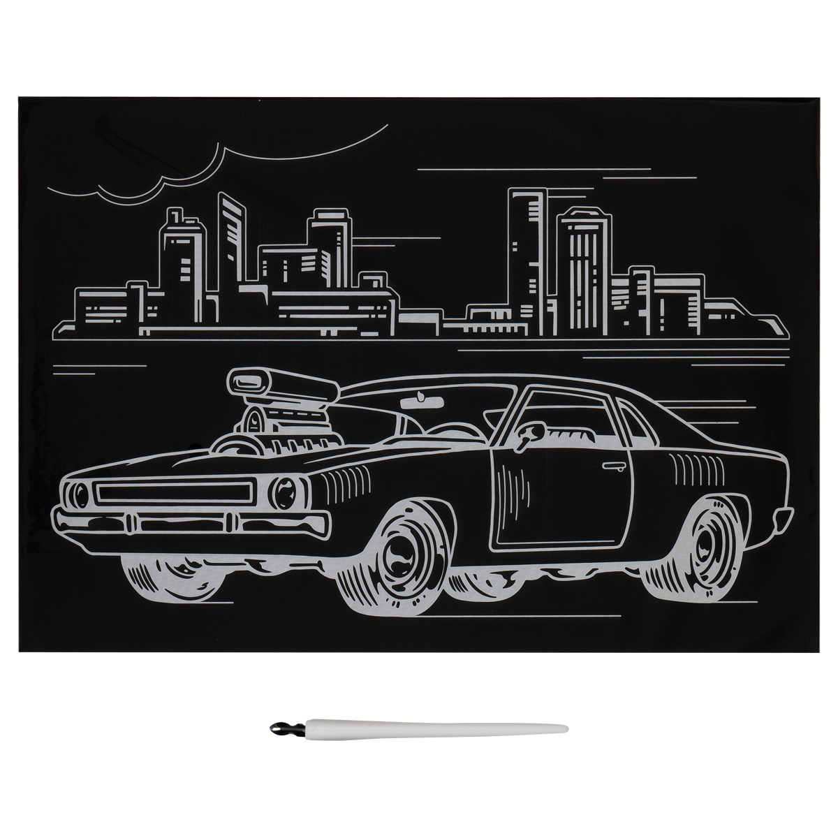 Гравюра с мультицветной основой «ТРИ СОВЫ» «Городской гонщик»— занимательный, увлекательный и несложный для ребенка вид творчества, который научит аккуратности и усидчивости. Состав набора: основа формата А4(21*29,7 см) из картона, штихель, крепление на стену. Гравюра понравится мальчикам.