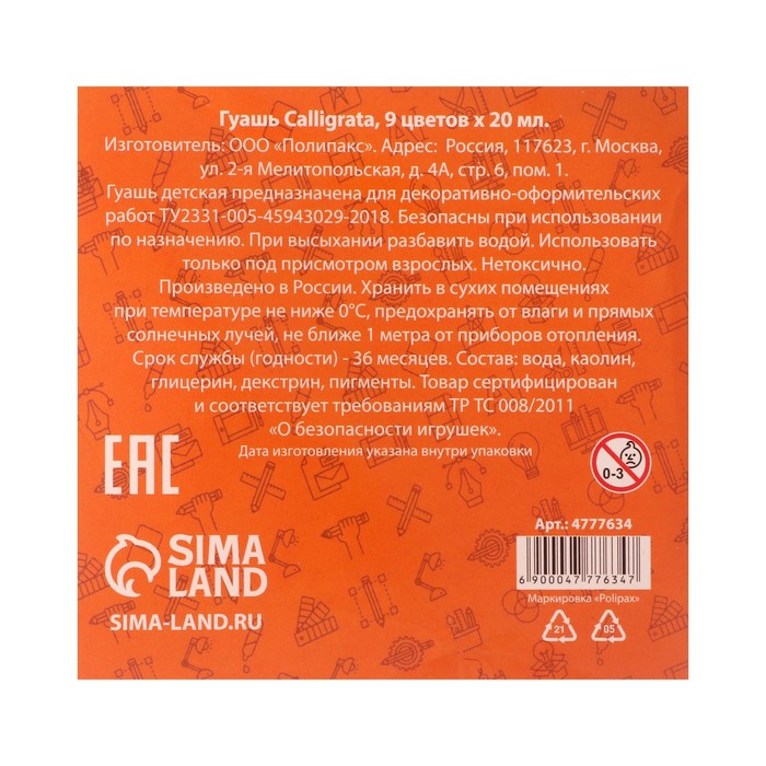 | Состав | Вода, глицерин, пигмент, декстрин, каолин |