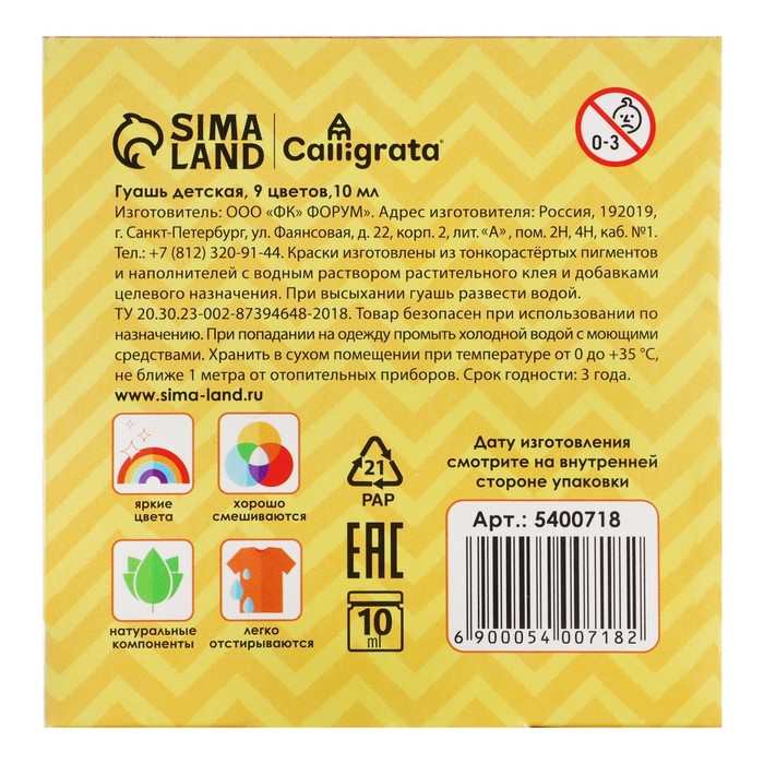 Гуашь 12 цветов по 10 мл, «Котик и мольберт»