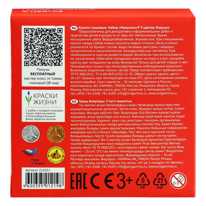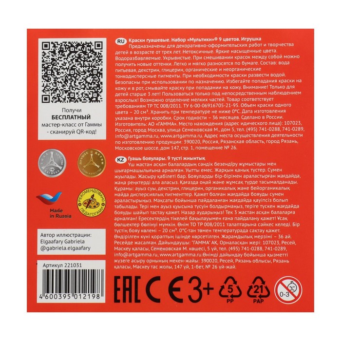 Гуашь 12 цветов по 10 мл, «Котик и мольберт»