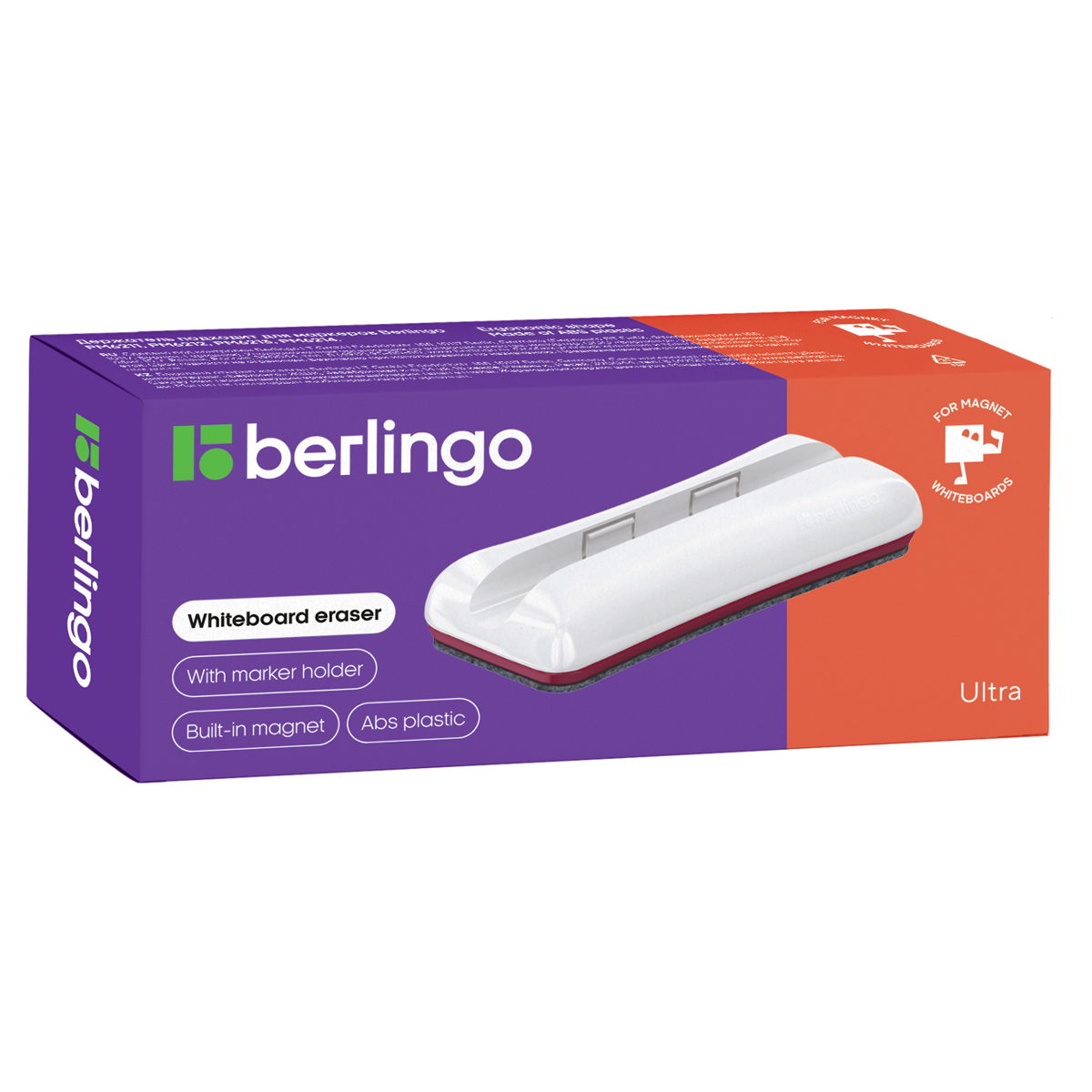 Губка-стиратель Berlingo "Ultra", на магните с мягкой износостойкой поверхностью. Предназначена для сухого стирания записей с магнитных досок. Встроенный магнит позволяет закрепить губку на магнитной поверхности доски. Удобная ниша для маркера в корпусе губки. Размер губки - 61 × 149 мм. Индивидуальная картонная упаковка.