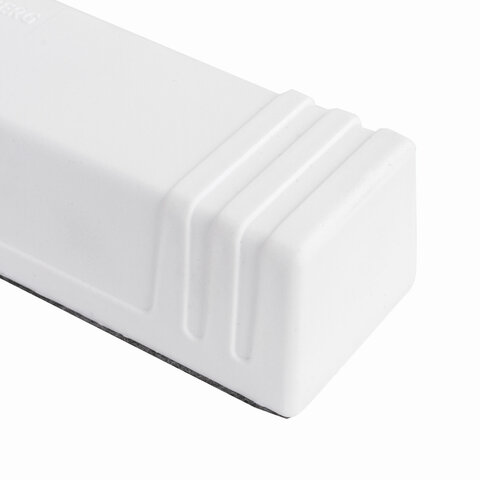 Выполнен из прочного пластика белого цвета, имеет стильный эргономичный дизайн. Обладает высоким качеством стирания. Стиратель прямоугольной формы со встроенным магнитом отлично крепится к любой магнитно-маркерной доске, что позволяет расположить его в любом месте рабочей поверхности доски. Сменные двусторонние вкладыши из фетра крепятся на липучки. Размер - 45х145 мм.