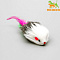 Мышь меховая однотонная с перьями 6,5 см, белая