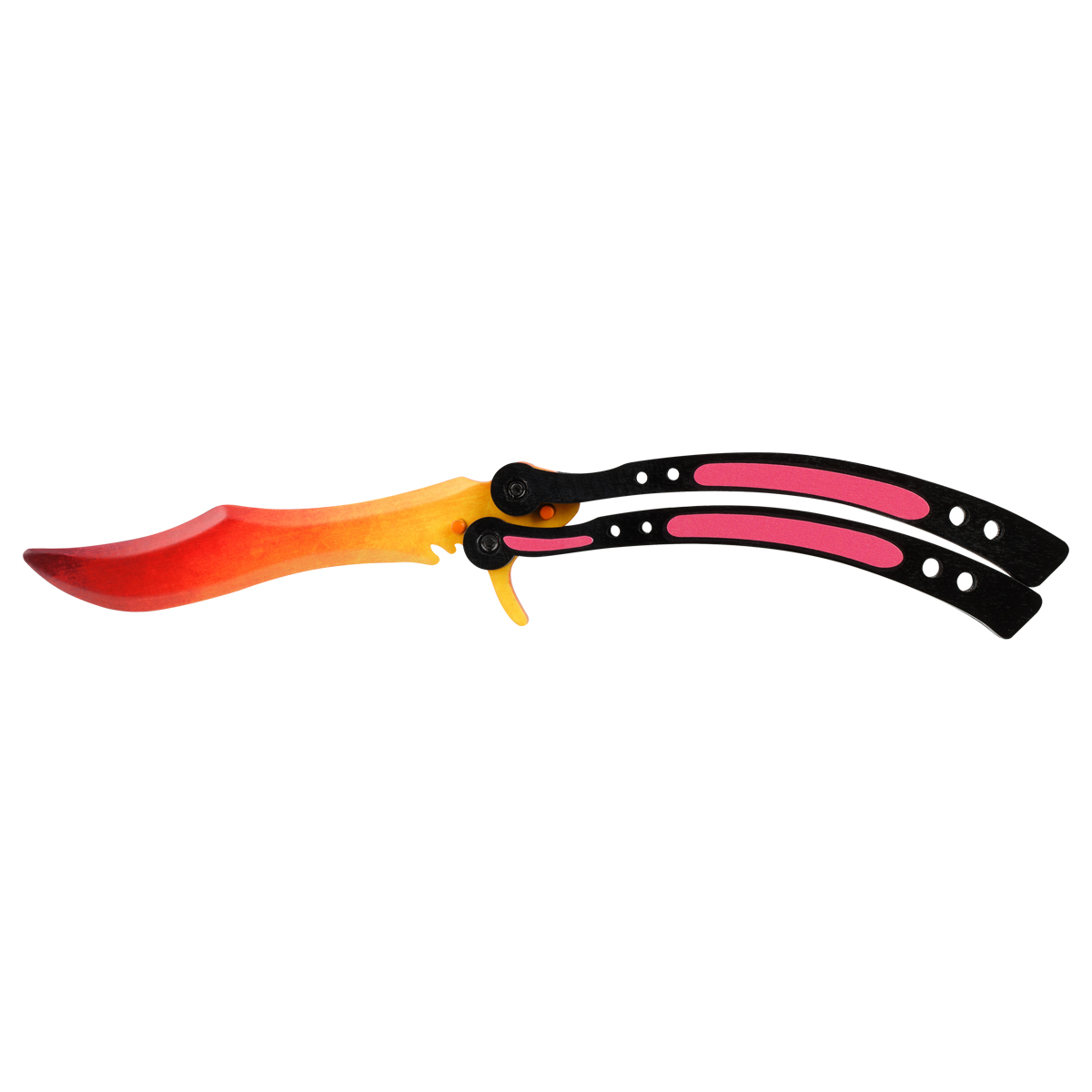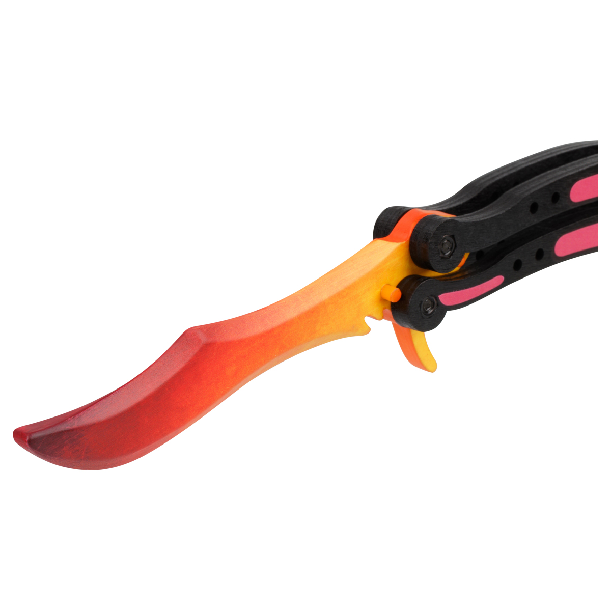 Деревянный нож «Градиент» бренда «ТРИ СОВЫ» порадует поклонников компьютерных игр своим высоким качеством и яркими скинами. Нож-бабочка положит начало коллекции игрового оружия или будет дополнением к уже существующей. Изделие абсолютно безопасно, острие ножа затуплено, края лезвия сглажены и закруглены. Можно спокойно играть и тренироваться, не беспокоясь о нанесении телесных повреждений. Игрушечное оружие «ТРИ СОВЫ» изготавливается в России из натуральных материалов (березовая фанера) с преобладанием ручного способа производства. Деревянное оружие окрашено с помощью стойкого и яркого пигмента, выглядит настоящим произведением искусства, а его поверхность имеет неповторимый рисунок. Важно помнить, что сделан из дерева и требует аккуратного обращения. Не стоит подвергать изделие чрезмерным механическим нагрузкам. Серия «Легендарный» отличает игрушку реалистичностью и четкой детализацией, а также специальный слой матового лака защищает от нежелательных механических повреждений.