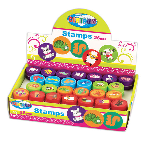 Штампик для творчества CENTRUM, с чернилами, цвета ассорти, в красочном дисплее.