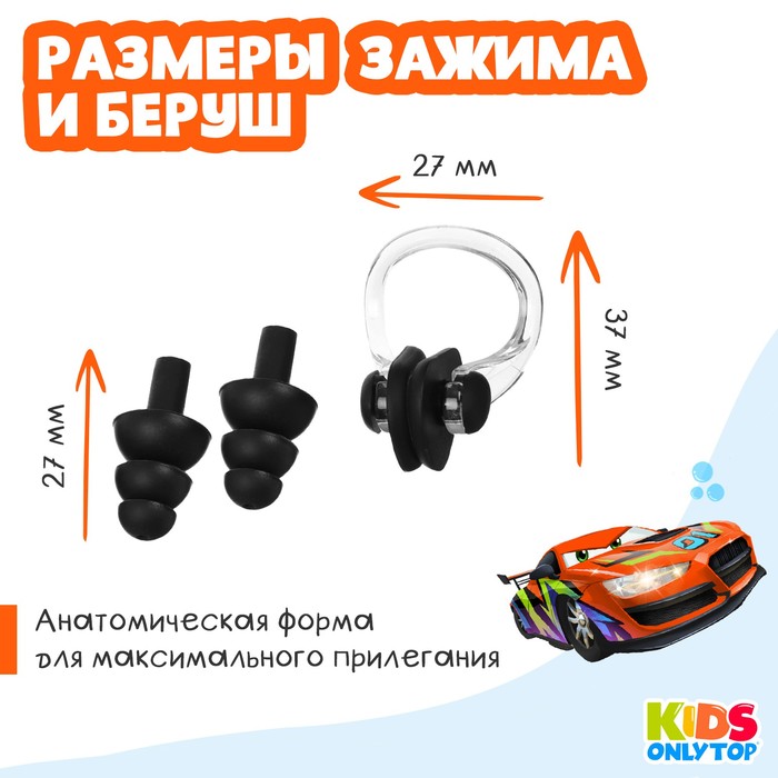 Набор для плавания ONLYTOP «Тигрёнок»: зажим для носа, беруши, цвет жёлтый