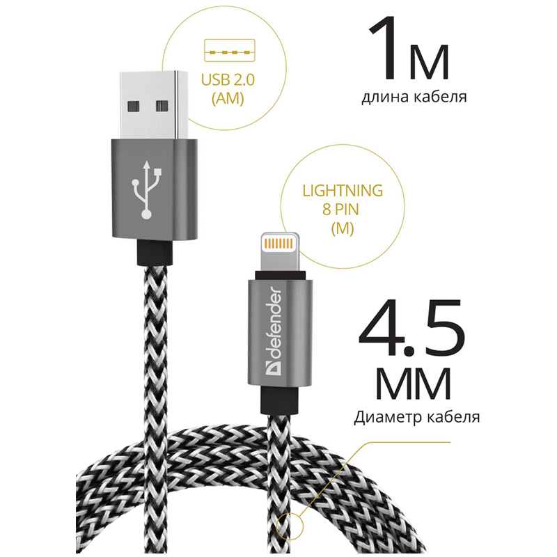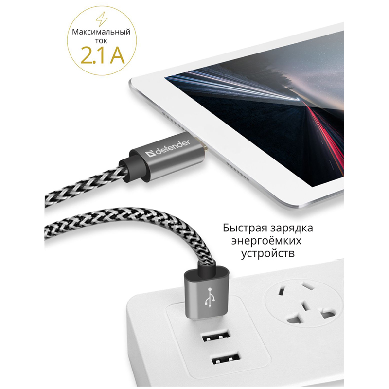 Максимальная сила тока 2.1A. Тканевая оплетка кабеля. Высокое качество коннекторов. Высокая скорость передачи данных – до 480 Мбит/с. Повышенная прочность и износостойкость.