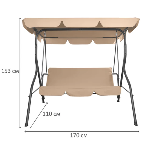 Качели 3-х местные выполнены в размере 170х110х153 см.