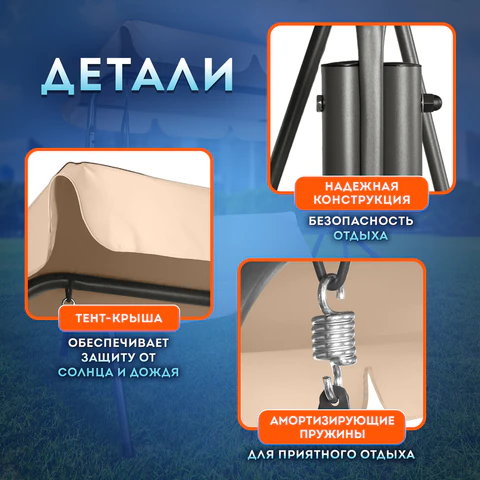 Отличаются прочным металлическим каркасом и оригинальной конструкцией. Удобное сиденье рассчитано на 3-х человек и выдерживают нагрузку до 250 кг.