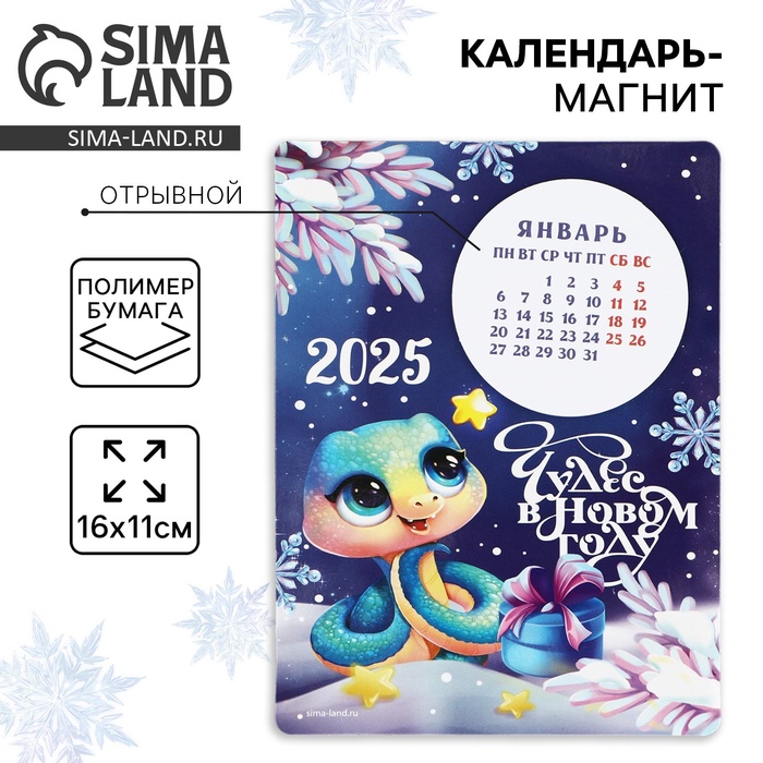 Магнит-календарь новогодний, змея, "Чудесного Нового Года!" символ года, 11 х 9 см, МИКС 1080