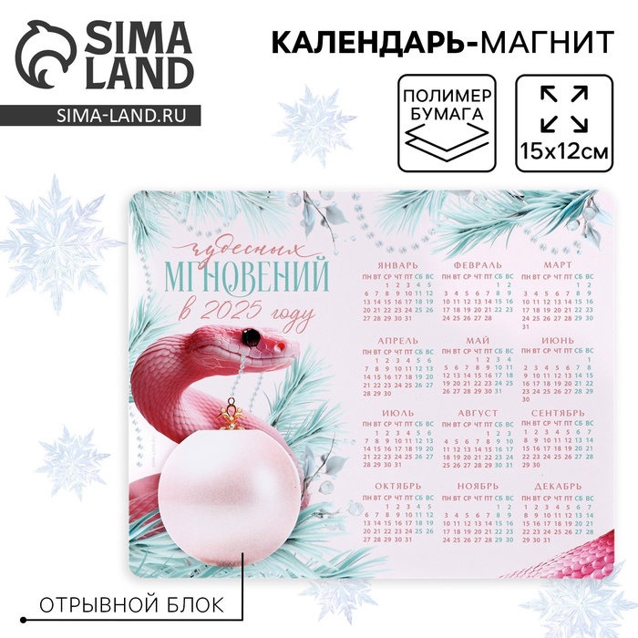 Магнит календарь 2025 с блоком «Чудесных мгновений», , 15 х 12 см