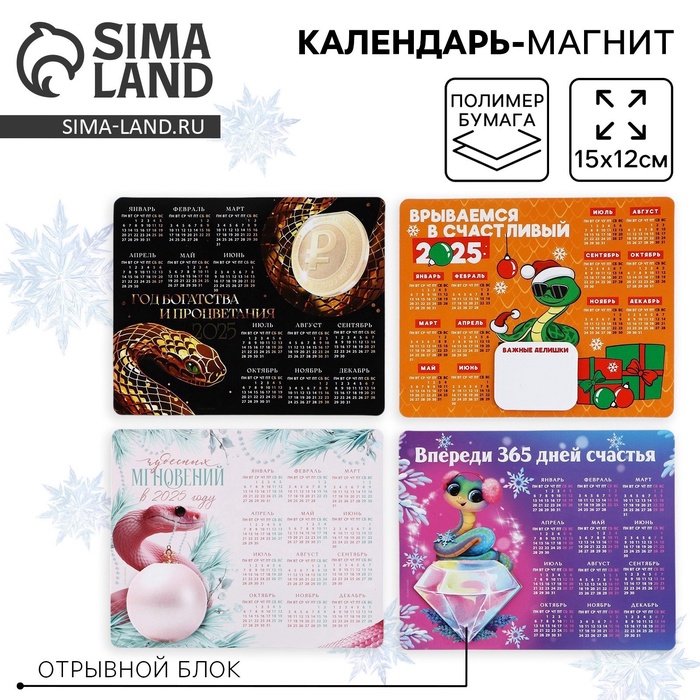 Календарь отрывной на магните "Символ года - 4" 2025 год, 9,5 х 13 см