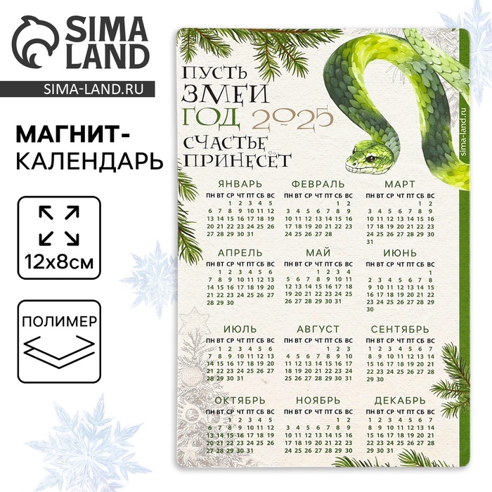 Магнит календарь 2025 новогодний «Счастья в дом», , 12 х 8 см