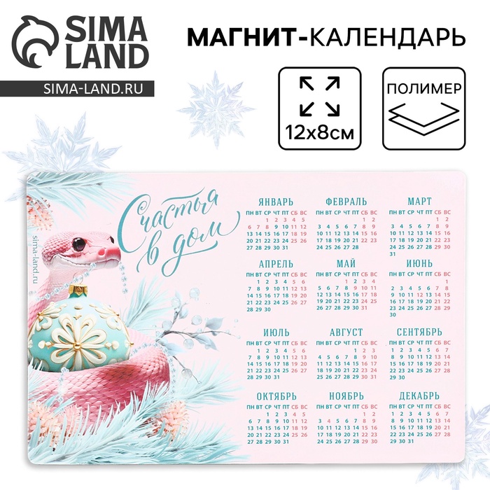 Магнит-календарь новогодний, змея, "Берегу дом и счастье в нём!" символ года, 11х9 см