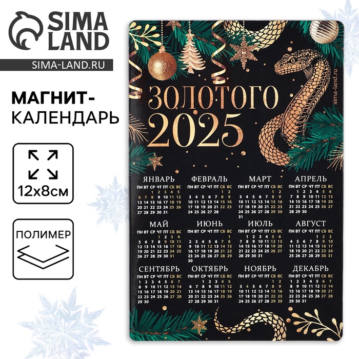 Магнит календарь 2025 новогодний «Золотого года», 12 х 8 см